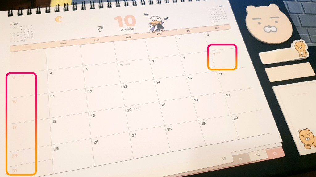 Mais, cette fois-ci, 한글날 han-geul-lal(le jour du hangeul), le 9 octobre, a été samedi.