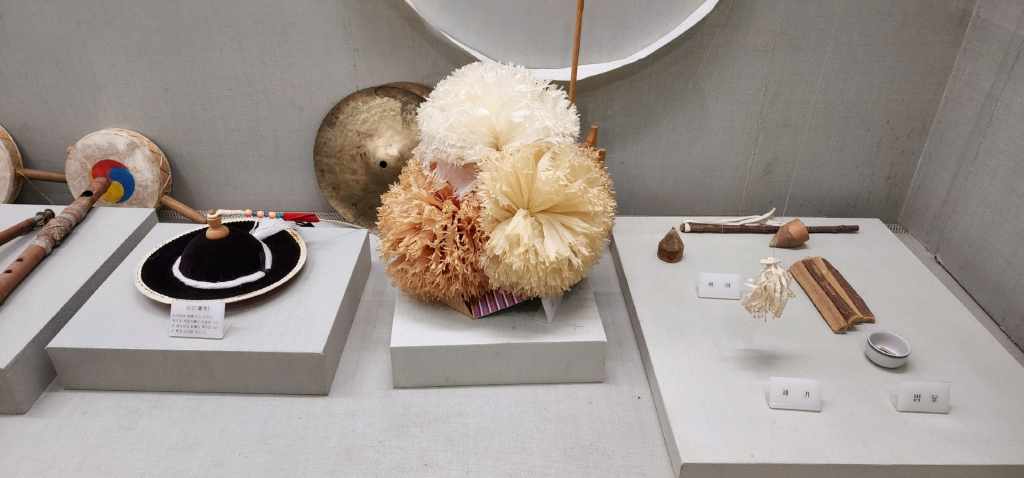 Ce sont des accessoires et des instruments utilisés lors de « 농악놀이 /nong.ak.no-ri/ ».