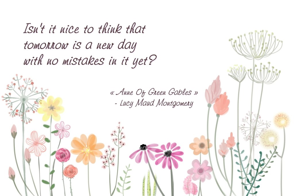 en « Isn’t it nice to think that tomorrow is a new day with no mistakes in it yet? »