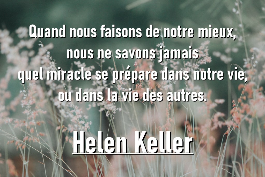 fr « Quand nous faisons de notre mieux, nous ne savons jamais quel miracle se prépare dans notre vie, ou dans la vie des autres. »