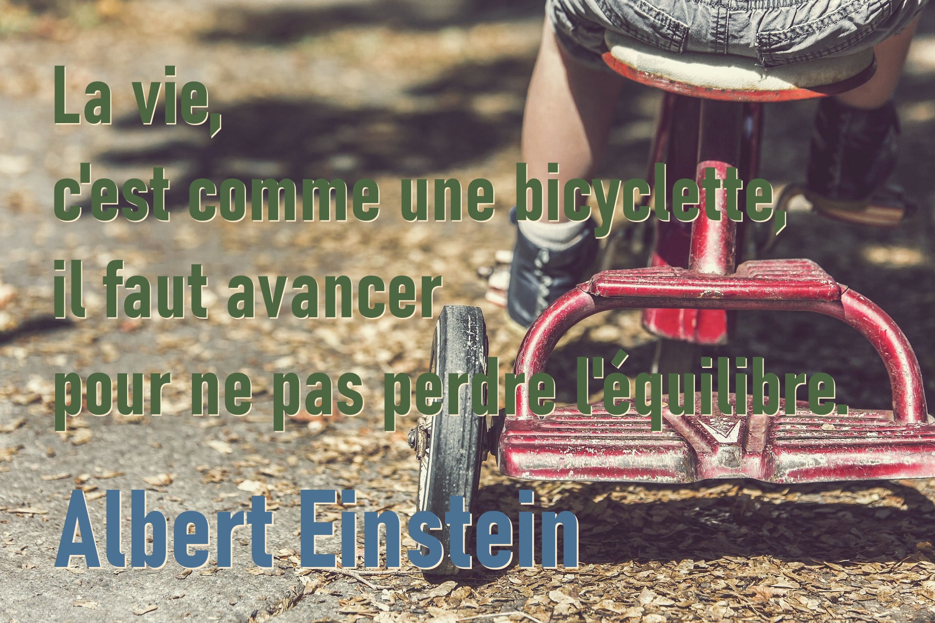 en « Life is like riding a bicycle. To keep your balance you must keep moving. »